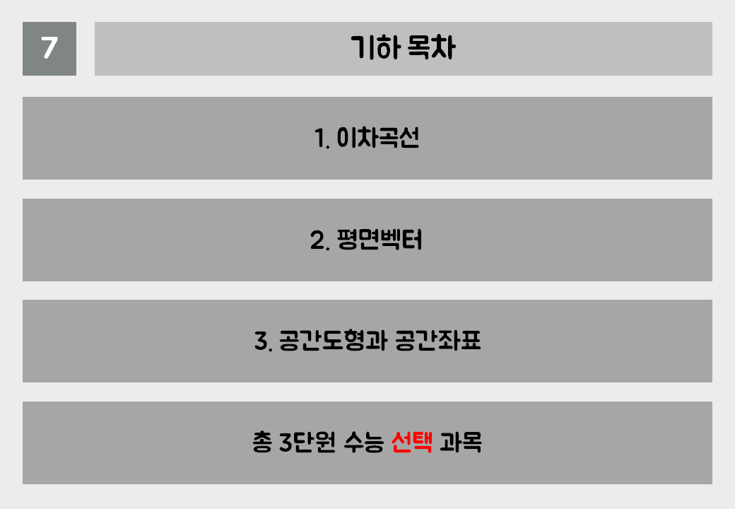 기하 과목 목차입니다.